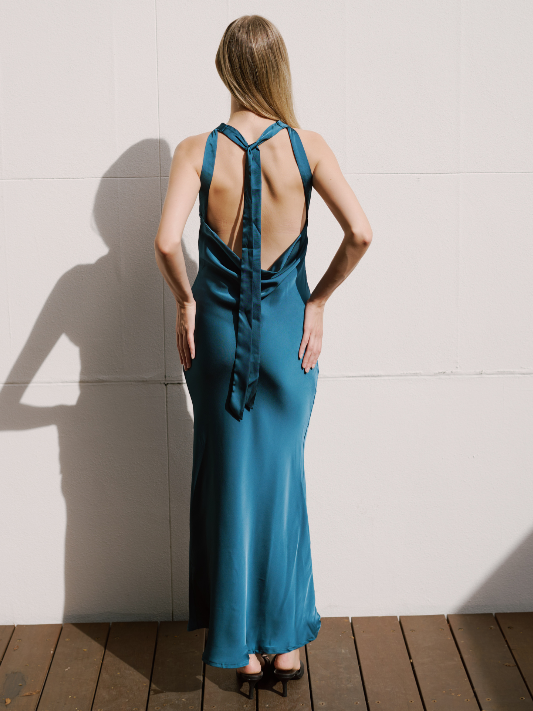 • Open back featuring a cowl back and tie